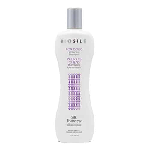 - BIOSILK SILK THERAPY FOR DOGS BRIGHTENS WHITE DOGS – Silk and enriching vitamins work together in this silk therapy dog grooming shampoo to help restore moisture balance and as a whitening shampoo for white dogs like goldendoodles, poodles, and bichons