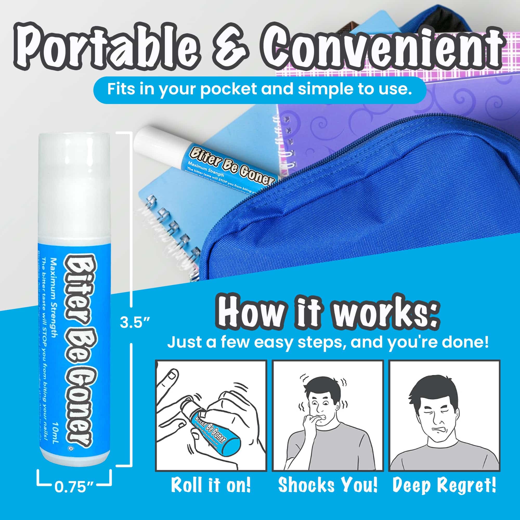 - Easy to Apply Nail Biting Treatment – The easy-to-use roll-on design simplifies the application process. Simply roll the nail biter stopper for kids and adults onto your fingernails and the surrounding skin. Our anti nail biting formula is maximum strength, so a little goes a long way.