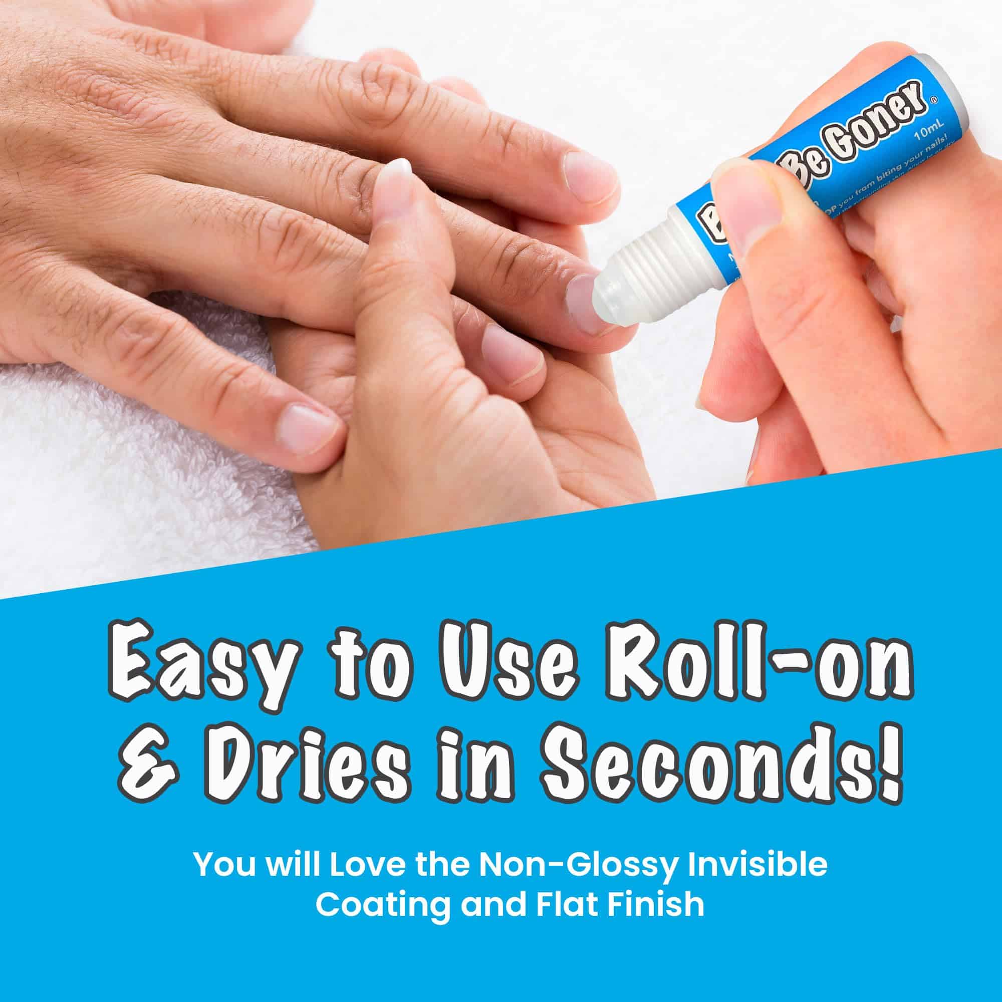 Biter Be Goner is a nail biting deterrent. The awful taste will STOP you from biting your nails. The easy to use roll-on applicator makes application quick and easy. It dries in seconds and is unscented. No Fumes! The invisible coating and flat finish make this product ideal for people who don’t want the glossy finish of other similar products. This invisible and matte finish make it possible to apply directly to skin. Order today and be on your way to breaking your nail biting habit! Stop nail biting with Biter Be Goner!
