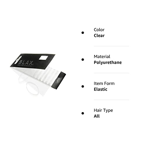 BLAX snag-free hair elastics virtually glide off your hair when removed! BLAX are sleek and virtually undetectable when used. No wonder the top hair stylists not only use, but endorse BLAX hair elastics. BLAX comes in 2mm and 4mm widths, and are available in a clear or black elastic, or in ultra thin headbands. Experience snag free hair and get in on the secret of pacesetting hairstylists everywhere! BLAX are great for all types of hairstyles (ponytails, braids, etc.). Ideal for men, women or children, Blax are made from 100% polyurethane and will not snag, tangle or damage hair when removed. BLAX are also a multi-year winner of ?Best Beauty Buys? by InStyle Magazine.