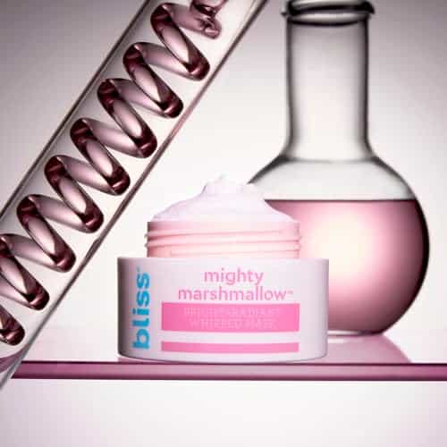 - MIGHTY MARSHMALLOW: This radiance-enhancing pink marshmallow mask is suitable for all skin types, including dry and sensitive.