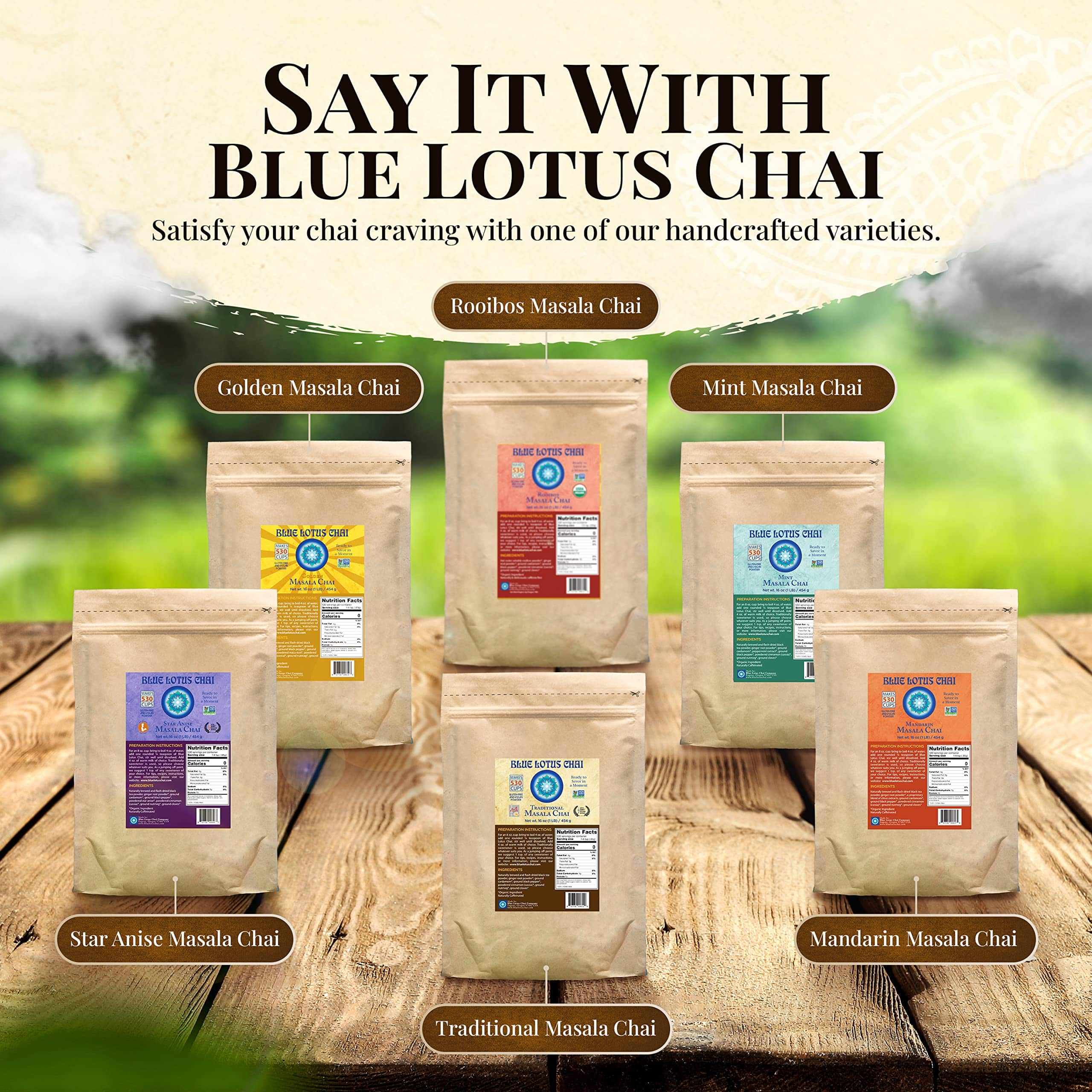 - VEGAN, GLUTEN-FREE, NON-GMO, WITH NO ADDITIVES, MILK POWDERS, SWEETENERS, FILLERS and NO NONSENSE: All varieties of Blue Lotus Chai contain naturally brewed, flash-dried tea powder and 100% Certified Organic by USDA powdered spices.