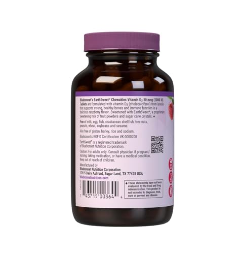 Original price was: ₹7,011.₹4,523Current price is: ₹4,523.Bluebonnet Nutrition Earth Sweet Vitamin D3 2000 IU Chewable Tablets, Aids in Muscle and Skeletal Growth, D3, Non GMO, Gluten, Free, Soy Free, Milk Free, Kosher, 90 Chewable Tablets, Raspberry Flavor