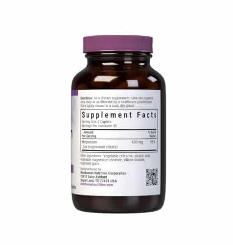 Bluebonnet Nutrition Magnesium Citrate (400mg of Magnesium)- Maximum Absorption – Supports Immune Health & Energy Production – Soyfree, Gluten-Free, Non-GMO, Kosher, Dairy Free, Vegan, 60 Caplets