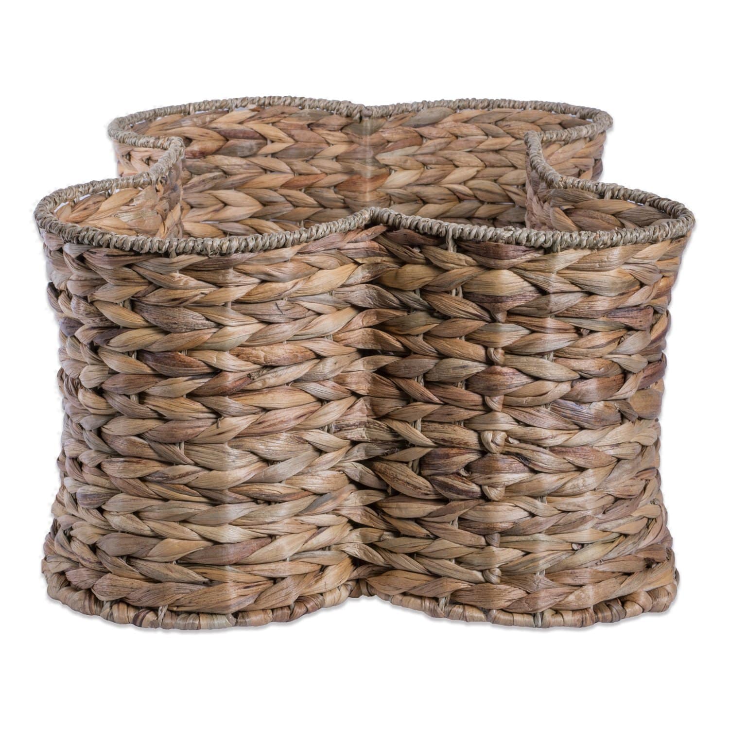 - MATERIAL AND CARE: Natural water hyacinth material woven into metal frame in a shape of a bone, trimmed in a darker color of sea grass fiber; Durable and long-lasting; Wipe clean with a damp cloth