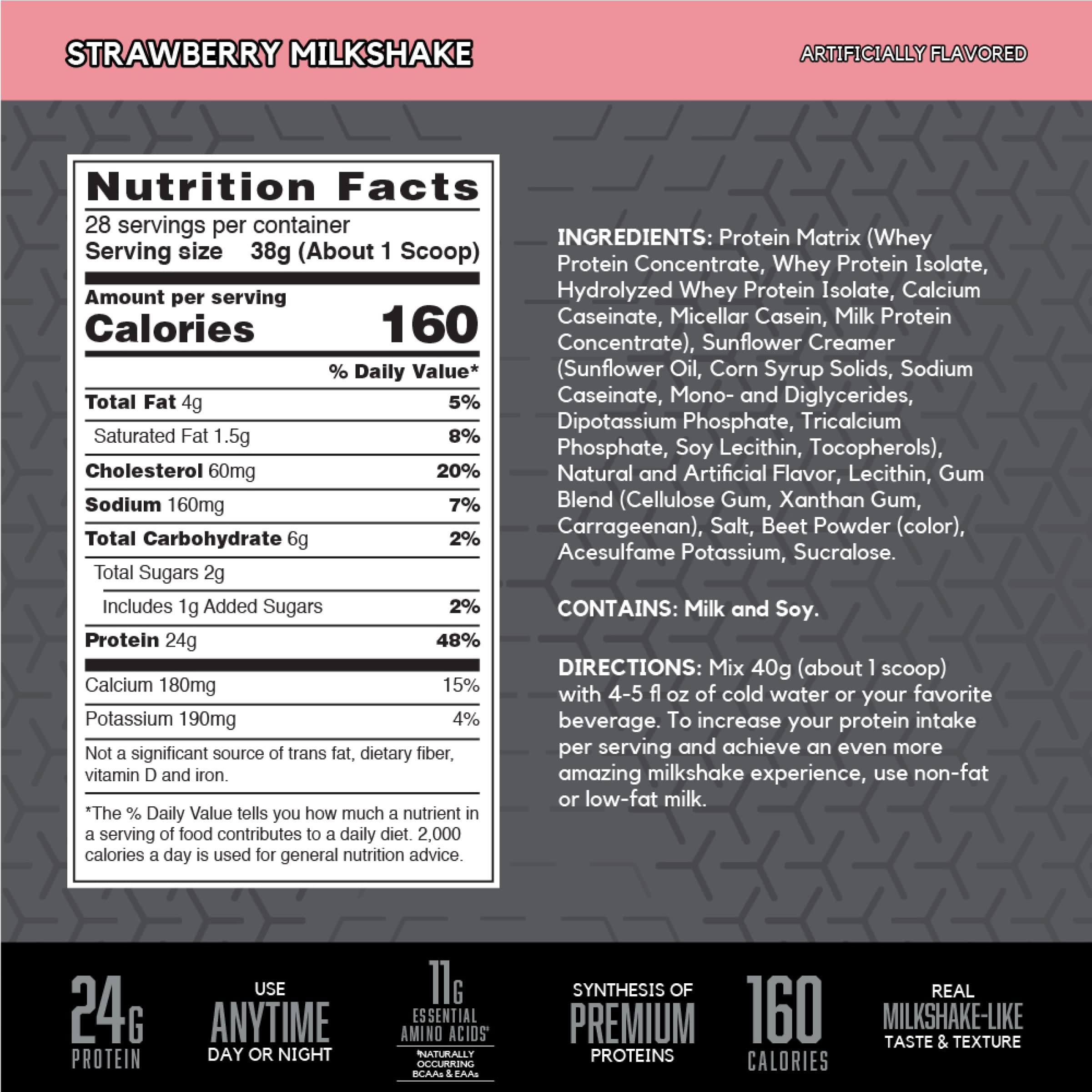 - 24 GRAMS PROTEIN-MATRIX ? Consisting of whey protein concentrate, whey protein isolate, hydrolyzed whey protein, calcium caseinate, micellar casein, milk protein concentrate to give your muscles the protein they need to support recovery