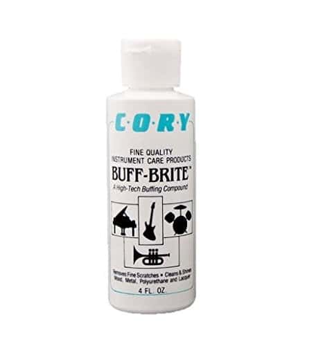 Buff-Brite is a high tech, water base buffing compound that gently removes scratches and cleans high performance finishes. Especially formulated to clean and buff polyurethane, lacquer, brass, nickel, silver, etc.Buff-Brite works easily on guitars, drums, cymbals, band instruments, high gloss and satin ebony pianos, synthesizers, instrument hardware, and tarnished name decals. Buff-Brite cleans without leaving a greasy film. Excellent for deep cleaning fingerprint oils from poly and lacquer satin ebony finishes.Always use care products in a small inconspicious area to test desired results.