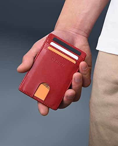 Buffway Mens Slim Wallet, Minimalist Thin Front Pocket Leather Credit Card Holder with RFI