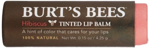 - LIP CARE: Add a hint of sheer, pretty red color with Burt’s Bees Hibiscus tinted lip balm for a natural, everyday look