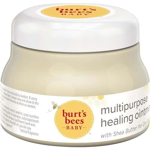 The smooth rich texture of Burts Bees Baby Multipurpose Healing Ointment forms a barrier against dryness leaving you with one soft happy baby. This multipurpose, non-irritating, petroleum free multipurpose ointment is pediatrician tested to be gentle and safe for everyday use. Apply ointment to babys body to moisturize and smooth babys skin. To calm your little ones sensitive diaper area, cleanse babys diaper area and apply ointment liberally. This jar of 100% natural origin baby ointment contains no phthalates, parabens, petrolatum or SLS. Nurture babys skin naturally with Baby Bee from Burts Bees.