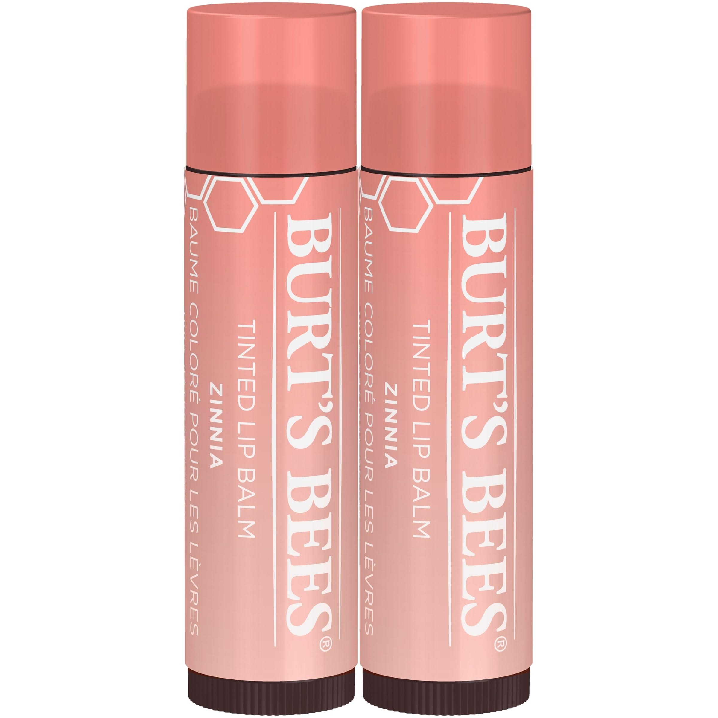 - BURT?S BEES LIP CARE: Add a hint of sheer color with Burt’s Bees 100% natural origin tinted lip balm in Zinnia for a natural everyday look; packaging may vary