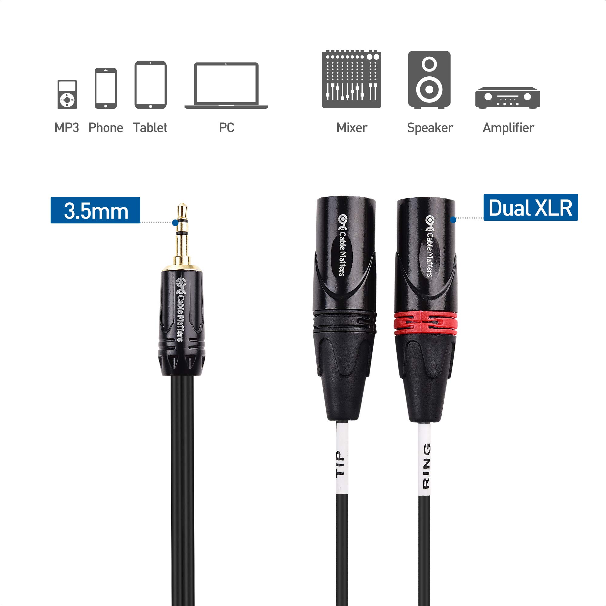 - Mini to XLR audio cable connects a smartphone, tablet, laptop or computer to a mixing console or studio monitors; Connect to a mixing console with XLR inputs for editing; Play music from your computer on studio monitors with Left and Right XLR input channels with this dual XLR to 3.5mm cable