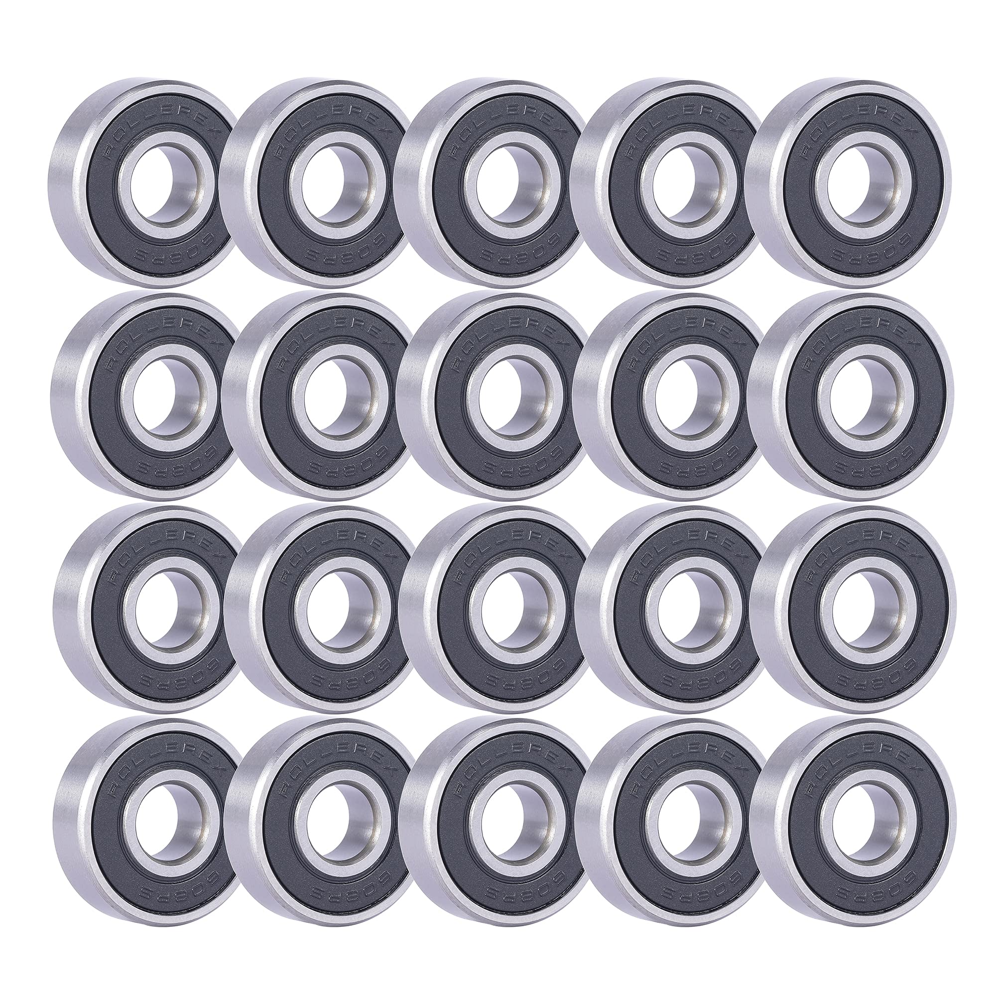 Rollerex 608-2RS Wheel Bearings 20-Pack (for Any Product Using Skate Wheels) (Carbon Steel
