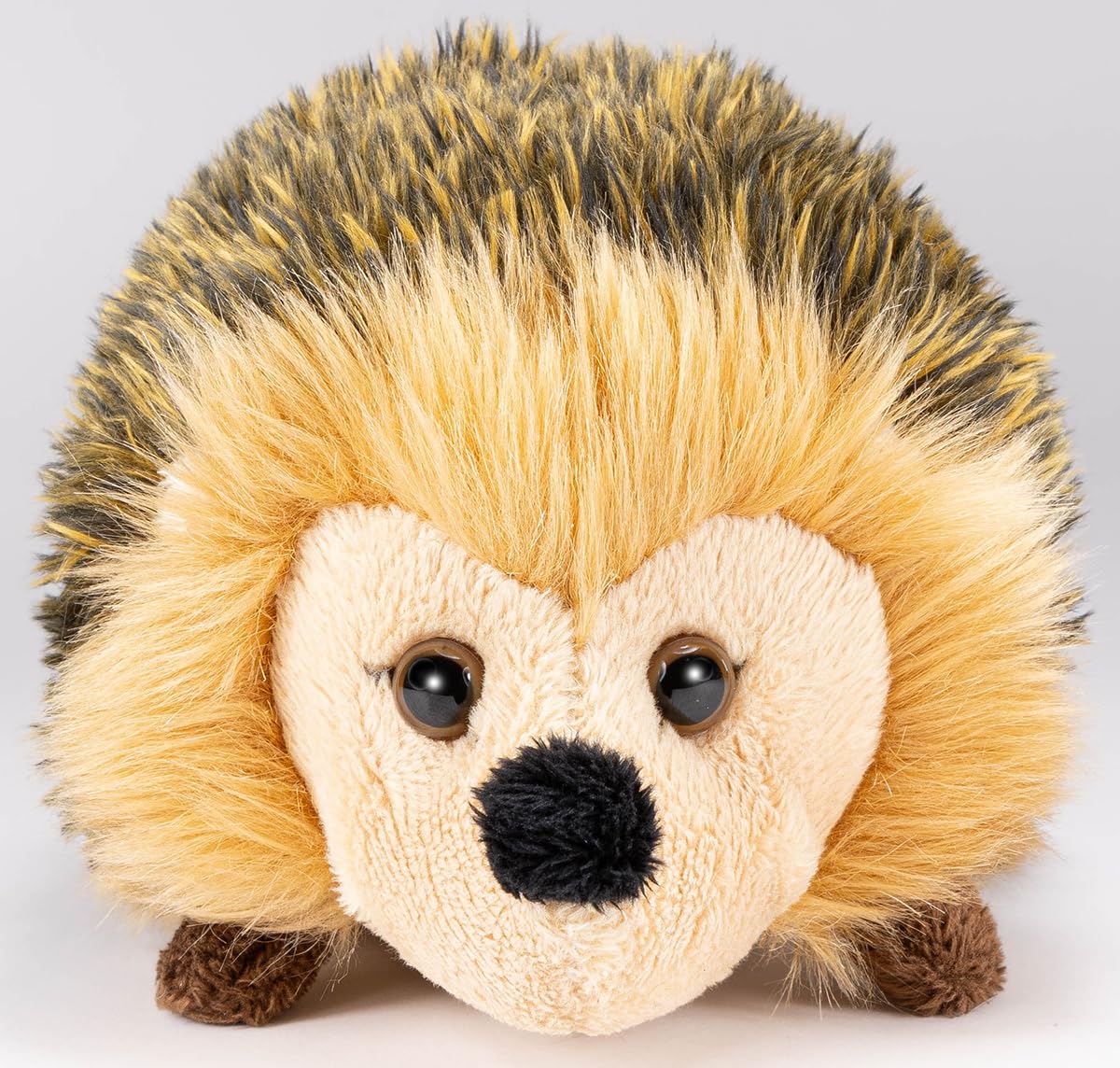 • The hedgehog’s body has a brown-shaded color. The chest and face are in velvety light brown. The color of the safety eyes is brown.