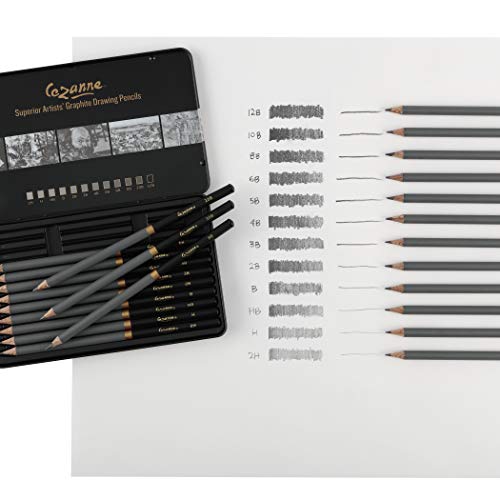 Cezanne Graphite Artist Drawing Pencil Set of 12 Professional Quality for Sketching & Shad