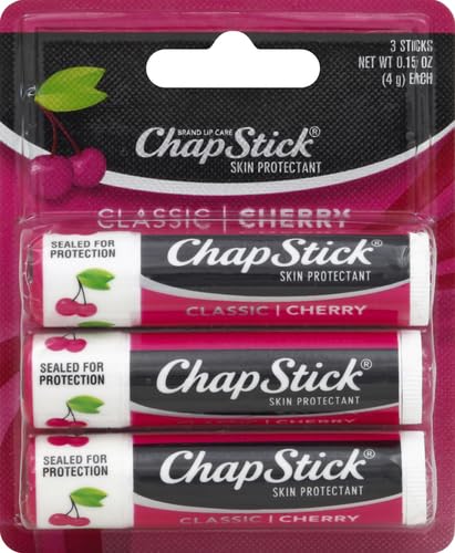 ChapStick Classic (1 Blister Pack of 3 Sticks, Cherry Flavor) Skin Protectant Flavored Lip Balm Tube, 0.15 Ounce Each