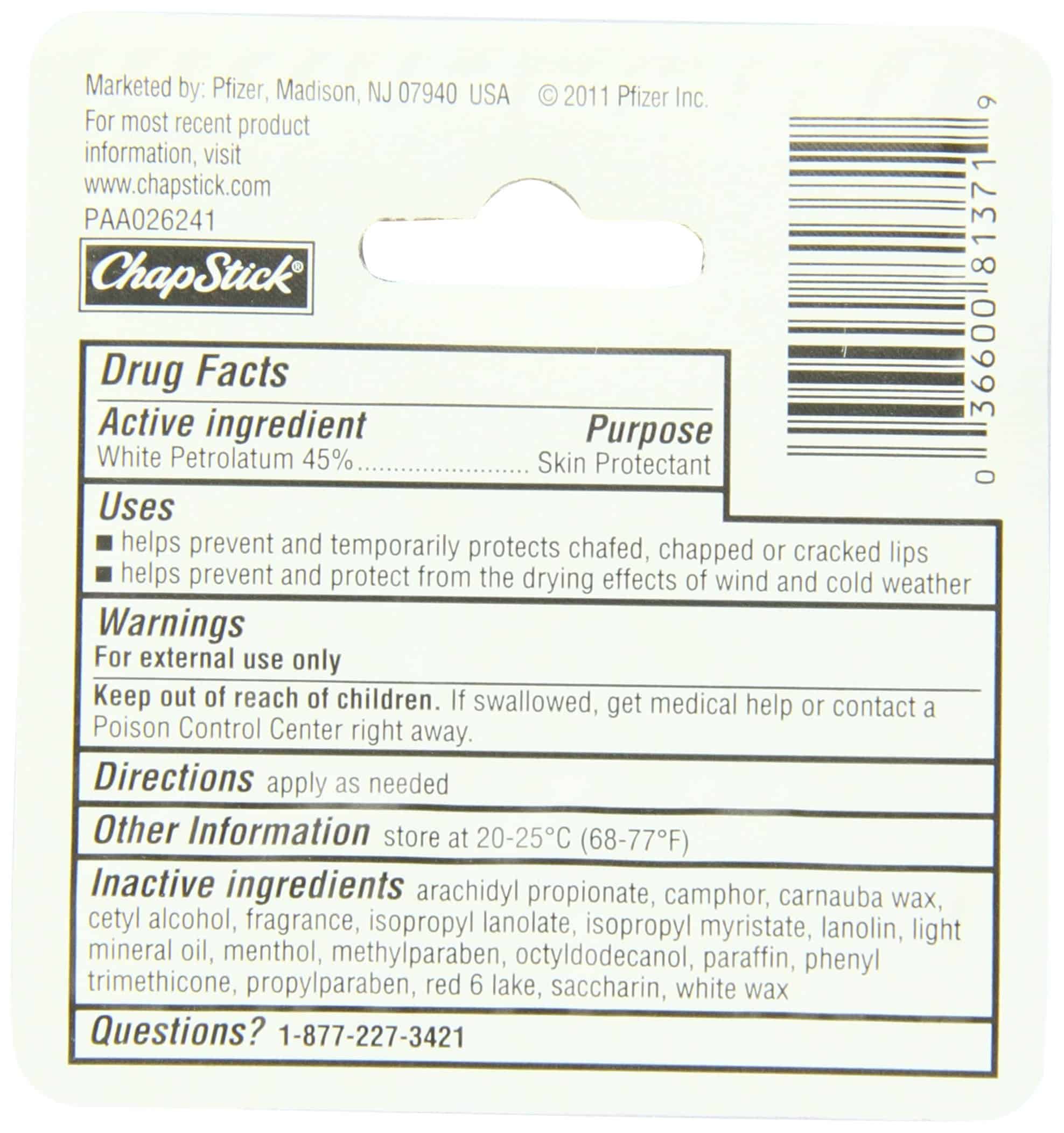 When it comes to caring for your lips, you can?t go wrong with a classic. ChapStick Classic Original is the one you know and love. It?s the lip protection you grew up with, that trusted tube you?ve turned to time after time. America?s favorite lip balm brand, ChapStick Classic Original for lips glides on easily to soften and protect delicate skin. Use as directed to help heal or prevent dry, chapped lips, and apply it daily to help keep lips silky smooth. Through every season, at home or on the go, trust ChapStick Classic Original lip balm for everyday comforting lip care. ChapStick Classic is available in Original, Cherry, Strawberry and Spearmint varieties. ChapStick ? Skincare for Lips.