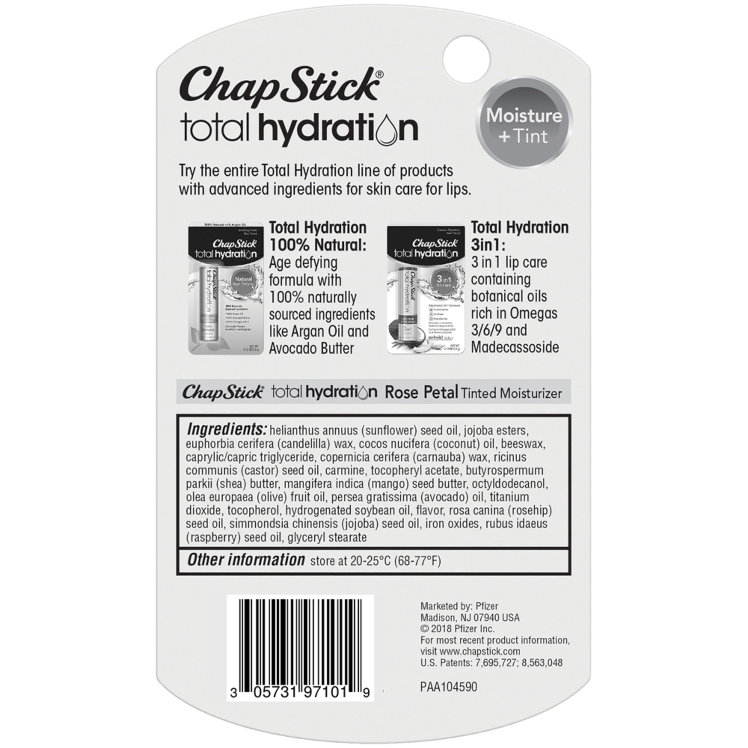 - One 0.12-ounce ChapStick Total Hydration Moisture + Tint Rose Petal Tinted Lip Balm Tube, Tinted Moisturizer