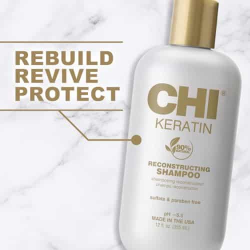 - RECONSTRUCTING SHAMPOO: The CHI Keratin Shampoo gently cleanses and reconstructs damaged hair by replenishing natural keratin levels while strengthening and sealing the cuticle, helping to protect against future damage.