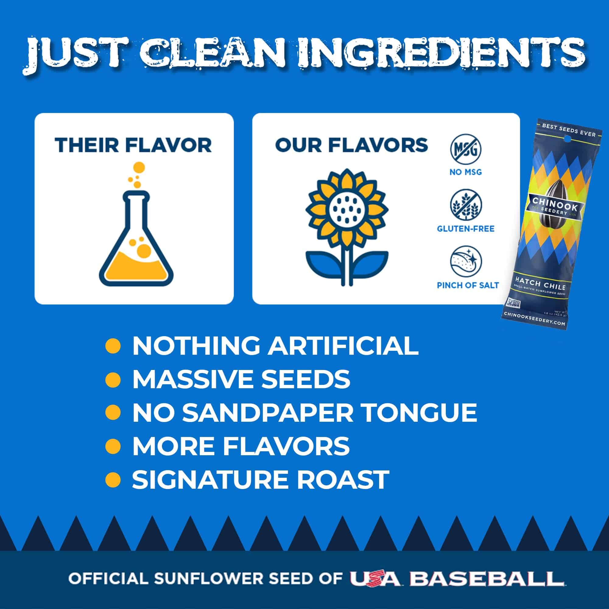 Chinook Seeder has a fresh take on the timeless, all-American tradition of eating sunflower seeds. Tastefully salted and uniquely flavored, Chinook’s non-GMO verified seeds are better tasting and better for you. Something about the combination of fresh dill pickles and sunflower seeds just seems right. If you cannot stop reaching into the bag for more, you probably shouldn’t anyway, because this snack is packed full of nutrients to give you energy and stamina.