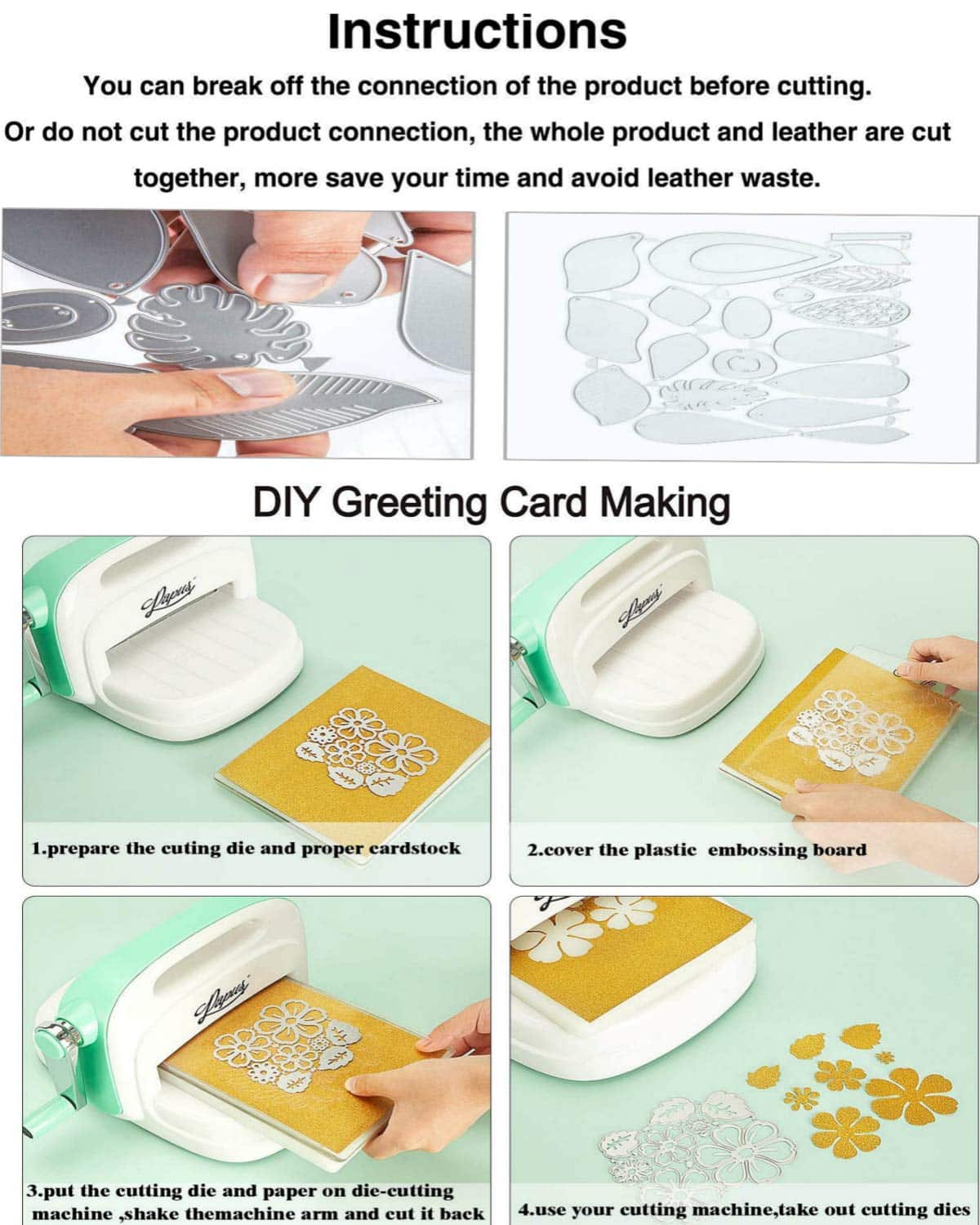 • Portable and easy to use: It is small size , die cutters can be applied to cut artificial leather, fabric, paper, card paper, you can use imagination to assemble together or stack together will achieve unexpected results.