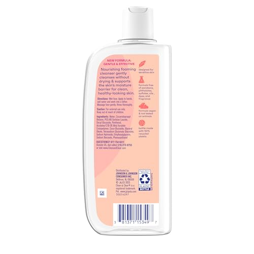 Clean & Clear Essentials Oil-Free Daily Foaming Facial Cleanser with Pro-Vitamin B5 gently removes oil and pore clogging impurities. Specially designed for sensitive skin, this fragrance free foaming face wash nourishes skin and gently cleanses without drying. Its oil-free formula supports the skin’s moisture barrier for clean, healthy-looking skin. The gentle and effective foaming cleanser is formulated without parabens, phthalates, sulfates, oils, dyes and fragrance. The vegan formula is not tested on animals and is packaged in a bottle made with 50% recycled plastic. To use, we face, apply the daily cleanser to hands and work into a lather. Massage face gently and rinse thoroughly. Use this fragrance-free foaming facial cleanser as part of a daily skincare routine with Clean & Clear.