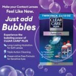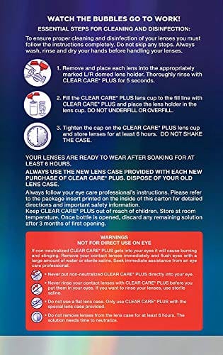 CLEAR CARE Cleaning Solution uses the bubbling power of hydrogen peroxide to give your lenses some much-needed TLC. Our Triple Action Cleaning power makes lenses so fresh, they feel like new, but without the preservatives found in your typical multi-purpose solutions