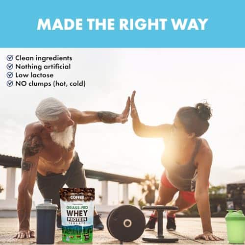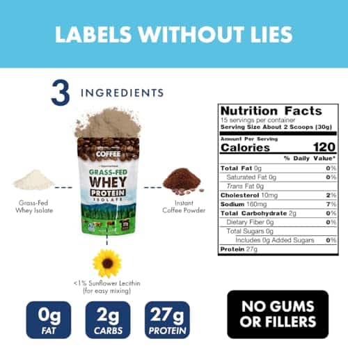 Original price was: ₹6,639.₹4,232Current price is: ₹4,232.Coffee Whey Protein Powder – Low Carb & Keto Friendly – Grass Fed Whey Isolate + Colombian Coffee – 60 mg Caffeine for Energy – Pre or Post Workout Drink Mix, Latte, Shake & Smoothie – 1 Pound