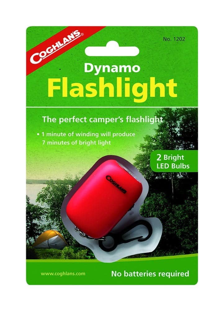 The hand-powered Coghlan’s Dynamo Flashlight uses no batteries and contains two bright LEDs. Just crank it for 1 minute to get up to 7 minutes light. It’s ideal for use when camping, in the car, at home for emergencies, on the boat, and more. It has 10 Lumens of light power, a positive feeling on/off switch, and convenient key chain clip. Coghlan’s makes the outdoors more comfortable and enjoyable with over 450 accessories for camping, hiking, fishing, and RVing — from cooking gear to first aid kits, insect netting, firestarters, tent repair, and more.