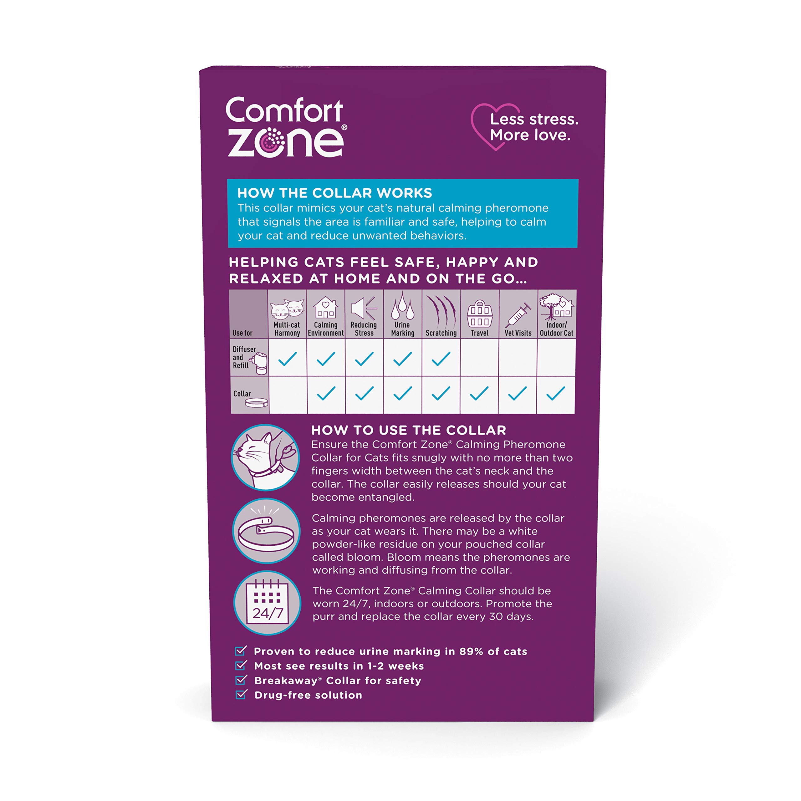 • CONTINUOUS BENEFITS: The continuous release makes the collar great for indoor-outdoor cats, large homes, everyday cat-calming, limiting stress-related behavior, introducing new cats, traveling, and visits to the vet