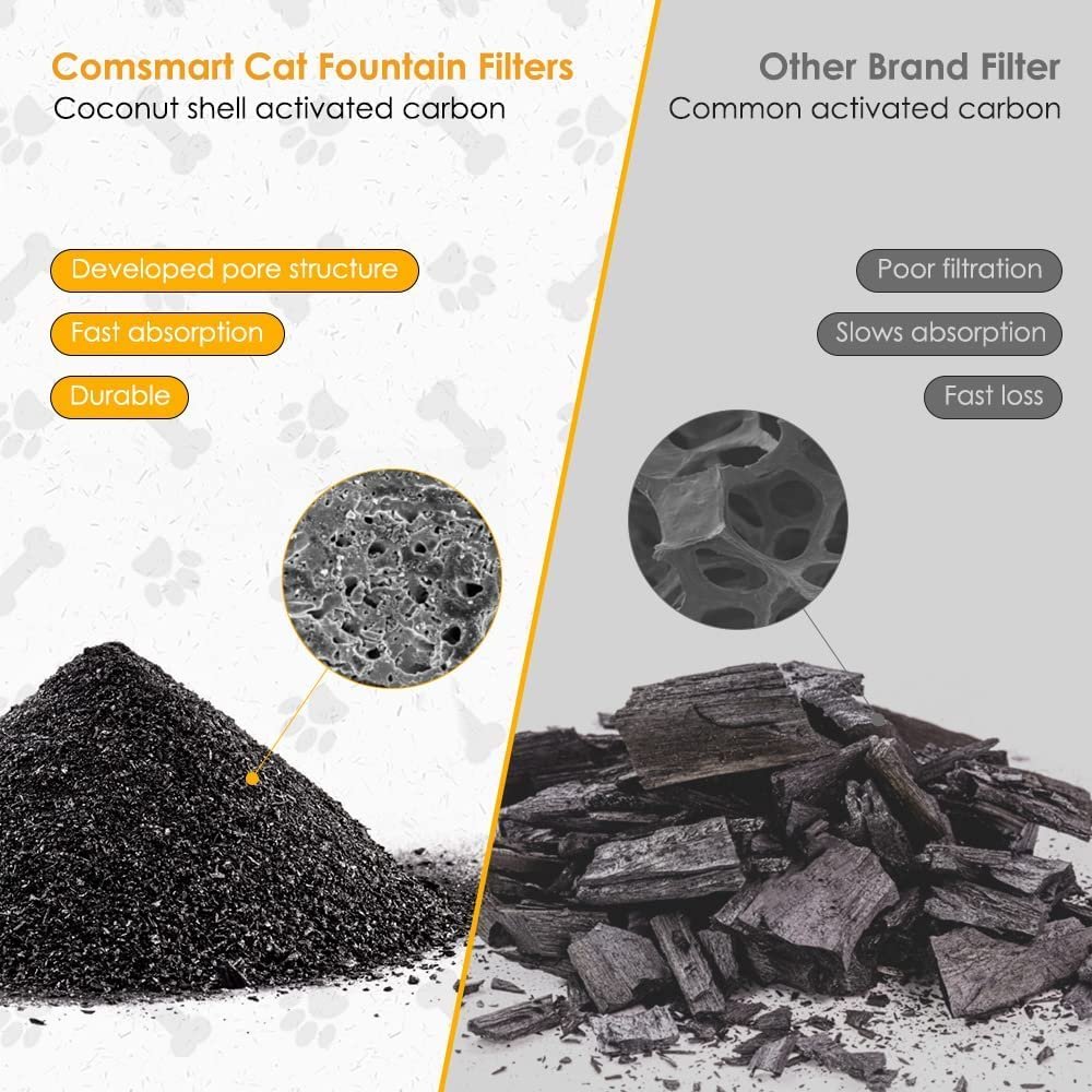 - Material: Composed of a cotton layer,activated carbon and an ion exchange resin.They can filter hair, heavy metals, and improve the taste of the water so that pets can drink clean and fresh water, more healthier than other only have two filter materials.