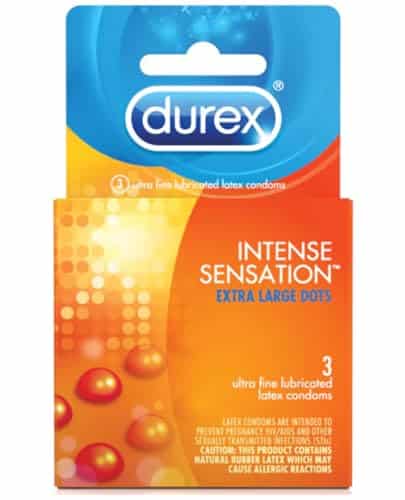Like all DUREX condoms, the Intense Sensation condom is specially designed to be easy to put on and comfortable to wear. It has a reservoir tip. It has a reservoir tip and is lubricated. Durable and Reliable Latex Construction