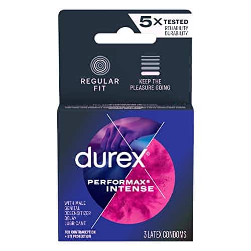 - DUREX PERFORMAX INTENSE: Delay condoms for men are made with a desensitizing lubricant to help him last longer and are textured and designed to help speed her up