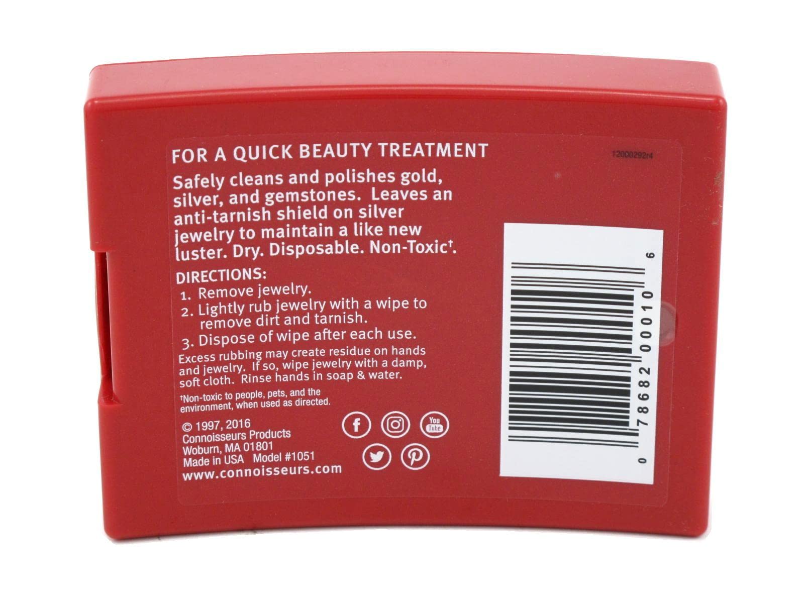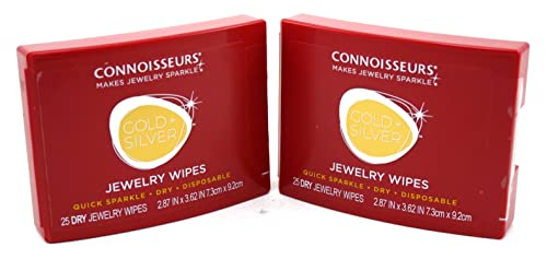 50 Connoisseurs Jewelry Wipes Great For Cleaning Jewelry This is a new set of 50 jewelry cleaning wipes They safely clean silver, gold, gemstones, costume jewelry and watches Each dispenser contains 25 disposable jewelry wipes Each wipe has been permeated with a special formulated jewelry cleaner that is dry to the touch These are just as effective as our liquid formulation and used professionally by the worlds finest jewelers