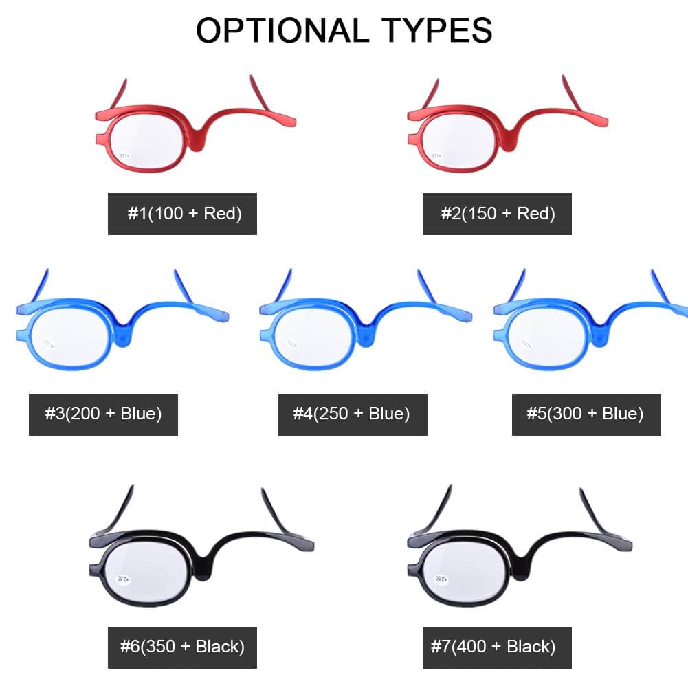 Description:If you are hyperopic, how do you solve the makeup problem? Now Magnify Eye Makeup Glasses here to help you. I will give you an exquisite makeup.Functions:1. To solve the makeup problem of the person with presbyopia.2. Defferent style, three style of color for your choice3.Rotating glasses, easy to use, gives you an exquisite make-up4.You can choose the most appropriate level of farsightedness.5. The cheapest eye makeup glasses to enlarge.Technical data:Item Type: Enlarge Eye Makeup GlassesOptional types: # 1 (100 + red); # 2 (150 + red); # 3 (200 + blue); # 4 (250 + blue); # 5 (300 + blue); # 6 (350 + black); # 7 (400 + black)Item size: 14 x 7 x 4 cmPackage weight: 17gScope of delivery:1 x eye makeup glasses enlarge