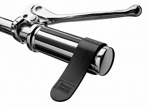 The Crampbuster provides a way for comfortable throttle control, and dramatically reduces the wrist fatigue often caused by long rides. It doesn’t lock the throttle on and installs with no tools, just slide it on, it rotates forward with ease yet when downward pressure is applied by your hand, the throttle is regulated effortlessly without squeezing. There are no moving parts or tools required. It works on the principle of an oil filter wrench. Simply stretch it open and snap it on the outside of your grip. It will rotate clockwise (upward for adjustment) but when turned counter clockwise (downward) by the weight of your palm it pinches and the throttle is pulled open. To accelerate, simply lift it a little (causing it to rotate up clockwise) then rest your palm back on it. To decelerate, simply spin it up clockwise completely around until it comes up into a position a little lower than before. It can also be used as a rest for you left hand. Standard size fits grips that are under 1-3/8 inches in diameter.