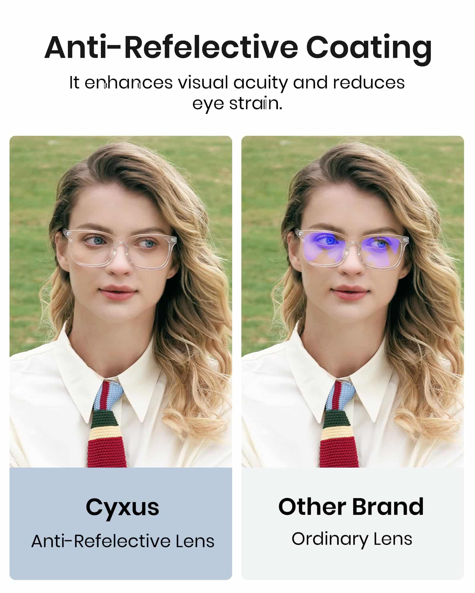 - ?ANTI-REFLECTIVE LENS?Cyxus blue light filter glasses is with premium anti-glare coating.It improves your vision by decreasing the amount of glare reflected off the lenses and gives you a clearer vision.