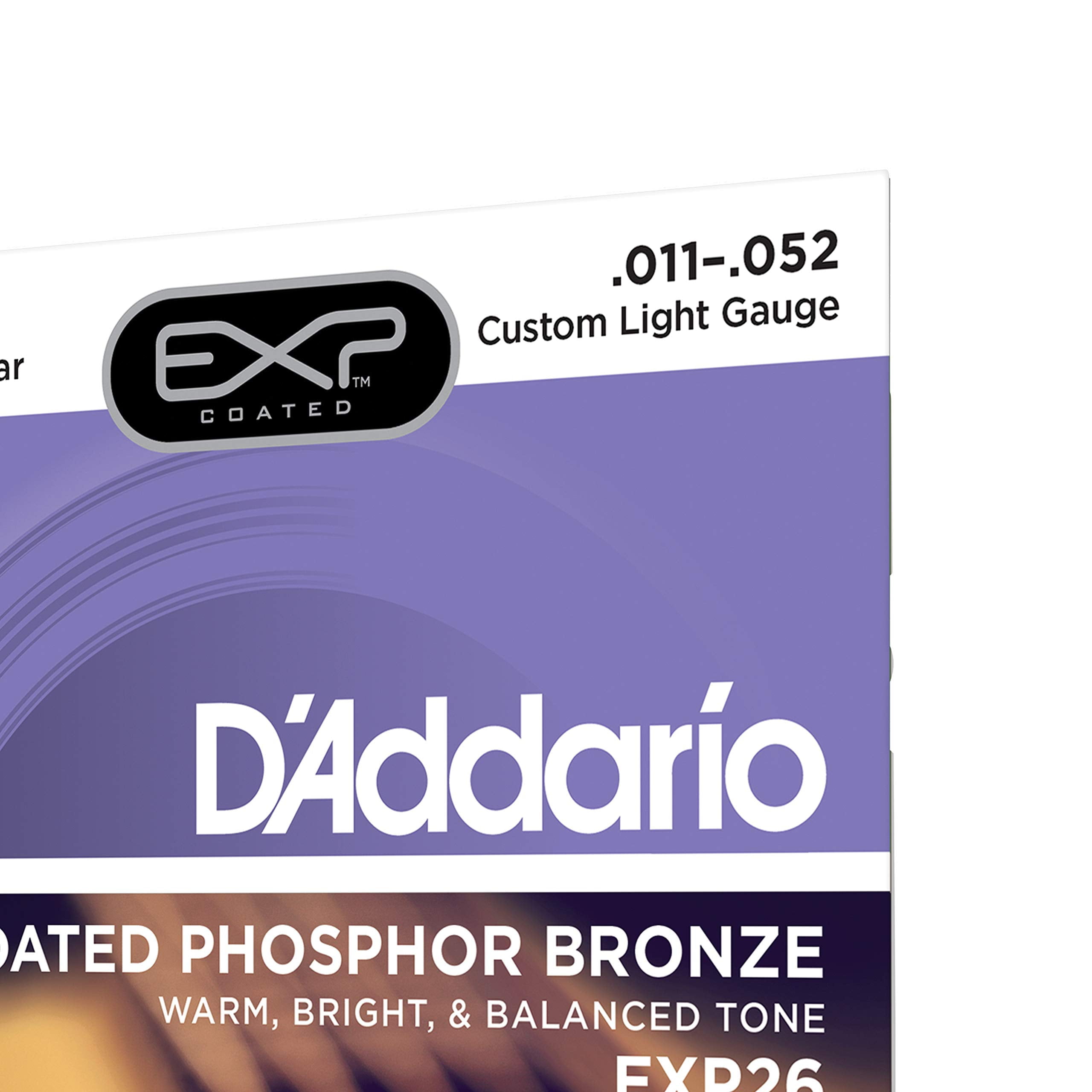 - MOST POPULAR ? Pursue your passion with D?Addario?s most popular coated acoustic guitar string set. The EXP26 Coated Phosphor Bronze Acoustic Guitar Strings delivers the ideal balance of volume, projection and comfortable playability. With EXP coated phosphor bronze strings you get a warm, bright, well balanced acoustic tone and 4 times more life than uncoated strings.