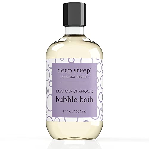 Lavender Chamomile – Soothing Bulgarian Lavender, calming Chamomile with hints of citrus creates peaceful perfection. A 100% aromatherapy essential oil blend. Indulge in this age-old ritual to rejuvenate your skin, senses, and spirit. Deep Steep?s Bubble Bath calms and relaxes leaving your skin feeling soft, smooth, and delicately scented. Organic Coconut Oil, Shea Butter, Argan Oil, and Aloe Vera Juice make this bubble bath a soothing moisturizer. The Perfect Bubble Bath. Our No. 1 Fragrance. Contains: Gentle Coconut-based cleansers for effective and feel-good cleansing. Organic Moroccan Argan Oil nourishes and hydrates. Organic Aloe Leaf Juice provides soothing benefits. Organic Shea Butter, and Coconut Oil moisturizes dry thirsty skin. Organic Extracts enhance each fragrances experience with their own health benefits. Directions: Pour a generous amount into bath as water fills the tub. Sink in and soak. Rinse. About Deep Steep: All Deep Steep products are free from Silicones, SLS, Parabens, Phthalates, Propylene Glycol, Mineral Oil, Petrolatum, Phenoxyethanol, Dyes, Animal Ingredients, and hundreds of other unacceptable ingredients found in competitors? products. Leaping Bunny Certified. Vegan. All Deep Steep products are formulated and manufactured by our parent company, Royal Labs. For over 35 years Royal Labs has been a leading manufacturer of premium natural beauty products, located in Charleston, South Carolina. No one makes healthy beauty products like we do. PERIOD!