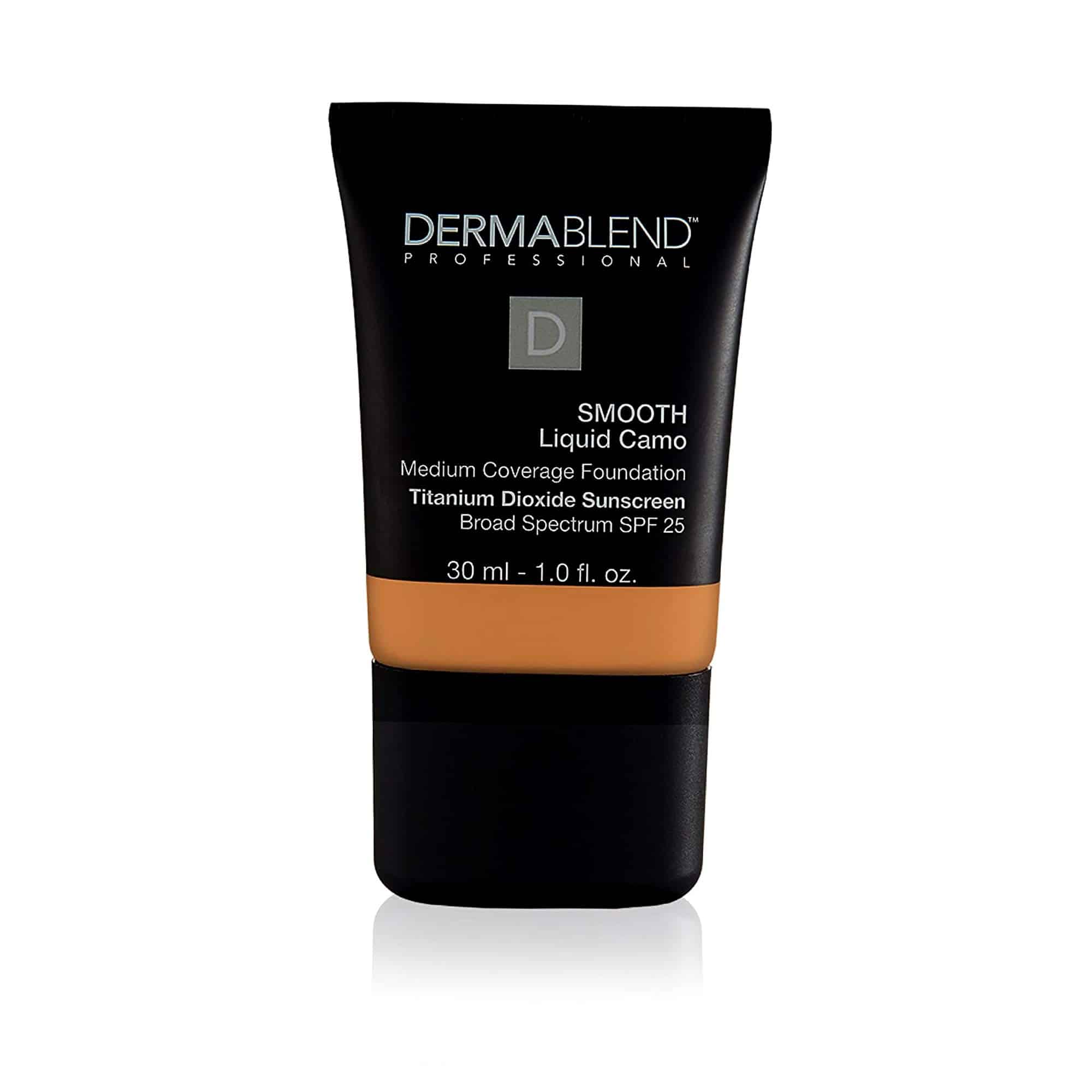 #1 Dermatologist Recommended Coverage Brand Dermablend brings you Smooth Liquid Camo Foundation, the ultimate hydrating, medium to full coverage foundation with broad spectrum SPF 25. This smoothing liquid foundation provides seamless, even coverage for up to 16 hours of consistent smudge and transfer resistant wear – when set with Dermablend Setting Powder. Cruelty-free. Formulated to suit normal to dry skin, it provides all-day hydration and broad-spectrum SPF 25 for flawless, comfortable coverage. This ulta-blendable liquid foundation contains concentrated high-performance pigments to cover skin concerns including dryness, blemishes, dark spots, uneven skintone, and redness. Product Benefits: ?Medium, buildable coverage with a natural finish ?Broad spectrum SPF 25 for easy sun protection ?All day hydration for healthy-looking skin SKIN SECURITY STANDARDS Dermatologist standards + #1 DERMATOLOGIST RECOMMENDED COVERAGE BRAND + NON-COMEDOGENIC + SENSITIVE SKIN-TESTED + ALLERGY TESTED Formula standards + CRUELTY-FREE + HIGH-PERFORMANCE PIGMENTS + FRAGRANCE-FREE + SLS-FREE + TRICLOSAN-FREE + PHTHALATE-FREE