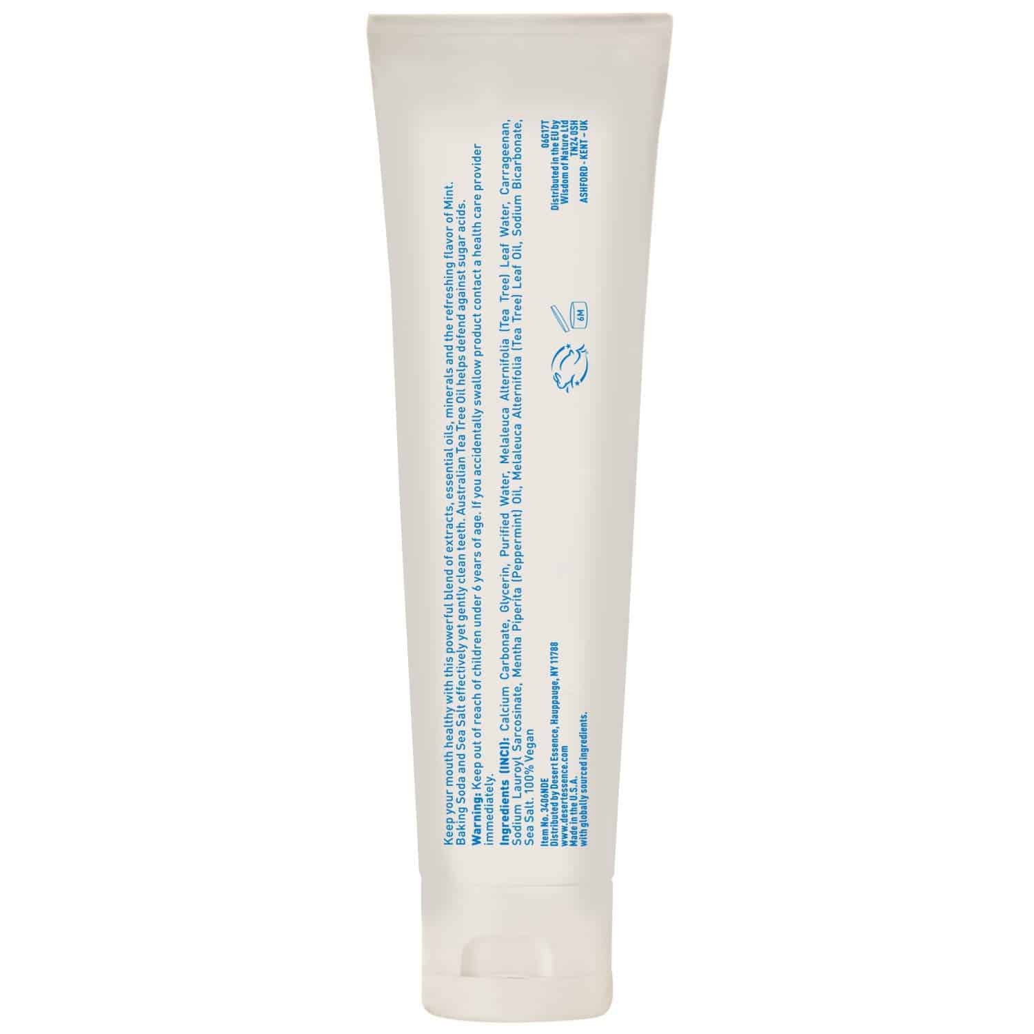 - FLUORIDE-FREE CLEAN – Plant-based extracts give this fluoride-free toothpaste its inherent cleansing power. Baking soda and sea salt gently helps to scrub away plaque, while Australian Eco-Harvest tea tree oil helps fight cavity-forming sugar acids. Leaves teeth sparkling clean and breath freshly scented with pure mint oil.