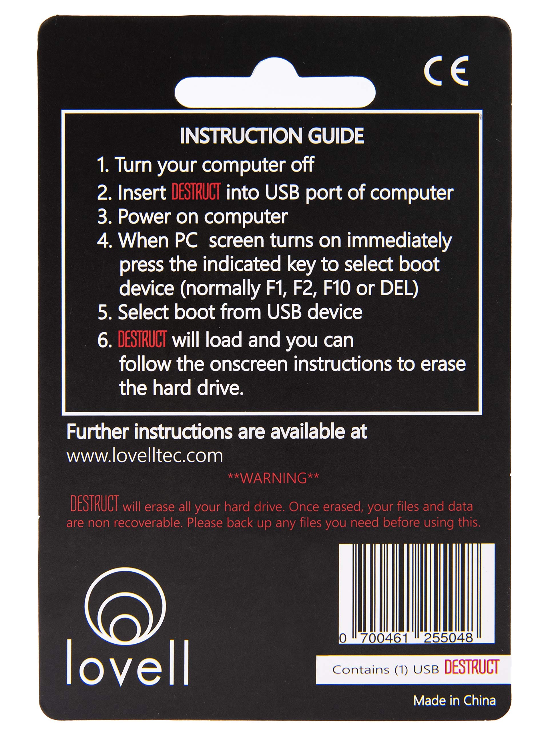 Original price was: ₹1,940.₹1,437Current price is: ₹1,437.DESTRUCT USB Gadget – Military Grade Hard Drive Wiper – Permanently Erase All Data on PC a