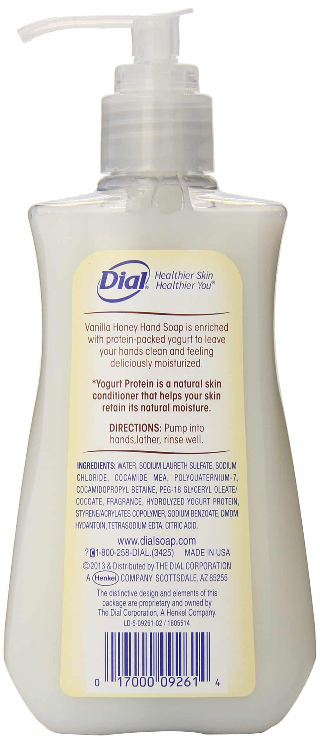Dial liquid hand soap vanilla creme and soy extract indulges your skin. Infused with skin defending soy extract. Decadent aroma of sweet vanilla. Protects and moisturizes.