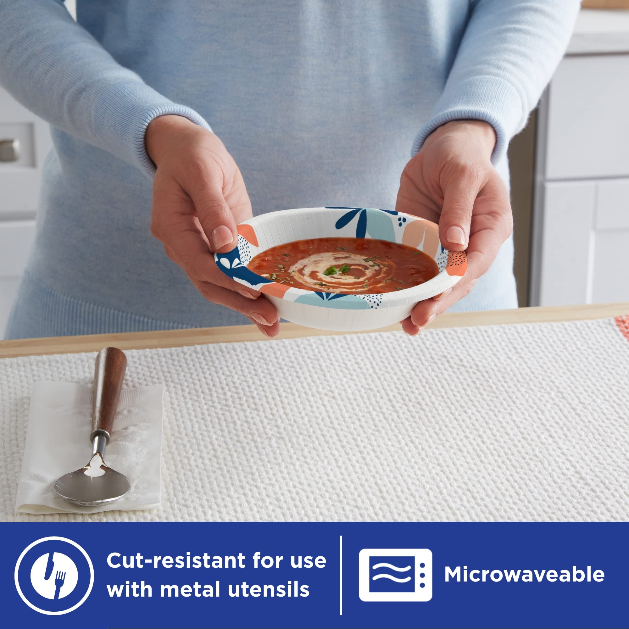 Focus on what matters with Dixie? 10 ounce Disposable Paper Bowls – they’re strong, convenient, and affordable enough to use every day. Dixie? disposable multicolor paper bowls are microwaveable for easy reheating, cut resistant, and have a Soak Proof Shield? that is designed to handle all types of food, including soup, chili, stews, salads with dressing, ice cream, and more. The Dixie? family of paper bowls and paper plates is strong so you can double up on servings, not bowls. Try them for everyday meals or snacks, family get-togethers, weekend brunch, birthday celebrations, or other special events. You’ll spend less time at the sink, and more time at the table! All Dixie? branded paper bowls, cups, and plates manufactured in Georgia-Pacific facilities are kosher certified by the Orthodox Union. Stock up today with this pack of 288 disposable paper bowls 10 oz!