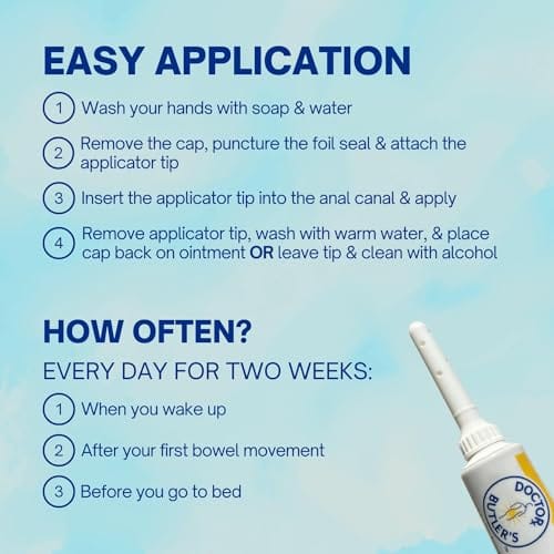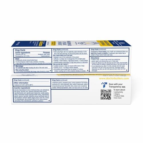 Leading Hemorrhoids Treatment: As a top-selling and highly effective treatment for hemorrhoids, Doctor Butler?s Hemorrhoid & Fissure Ointment offers you the ultimate, over-the-counter solution for relief of the discomfort, burning, and irritation associated with hemorrhoids. Unlike other hemorrhoid creams, our healing formula offers: Fast Acting Relief: Discover immediate relief of burning, discomfort, irritation, swelling, and itching, associated with hemorrhoids or an anal fissure. Immediate Protection: Your skin will quickly feel soothed and protected, with a unique blend of effective ingredients like essential oils, herbs, aloe vera and ginseng extract, and more. Supports Healing: With a proctologist-developed blend of natural and medicated ingredients, this hemorrhoids cream brings immediate hemorrhoid relief and promotes long-term healing, making it your ideal dual hemorrhoid and anal fissure treatment.