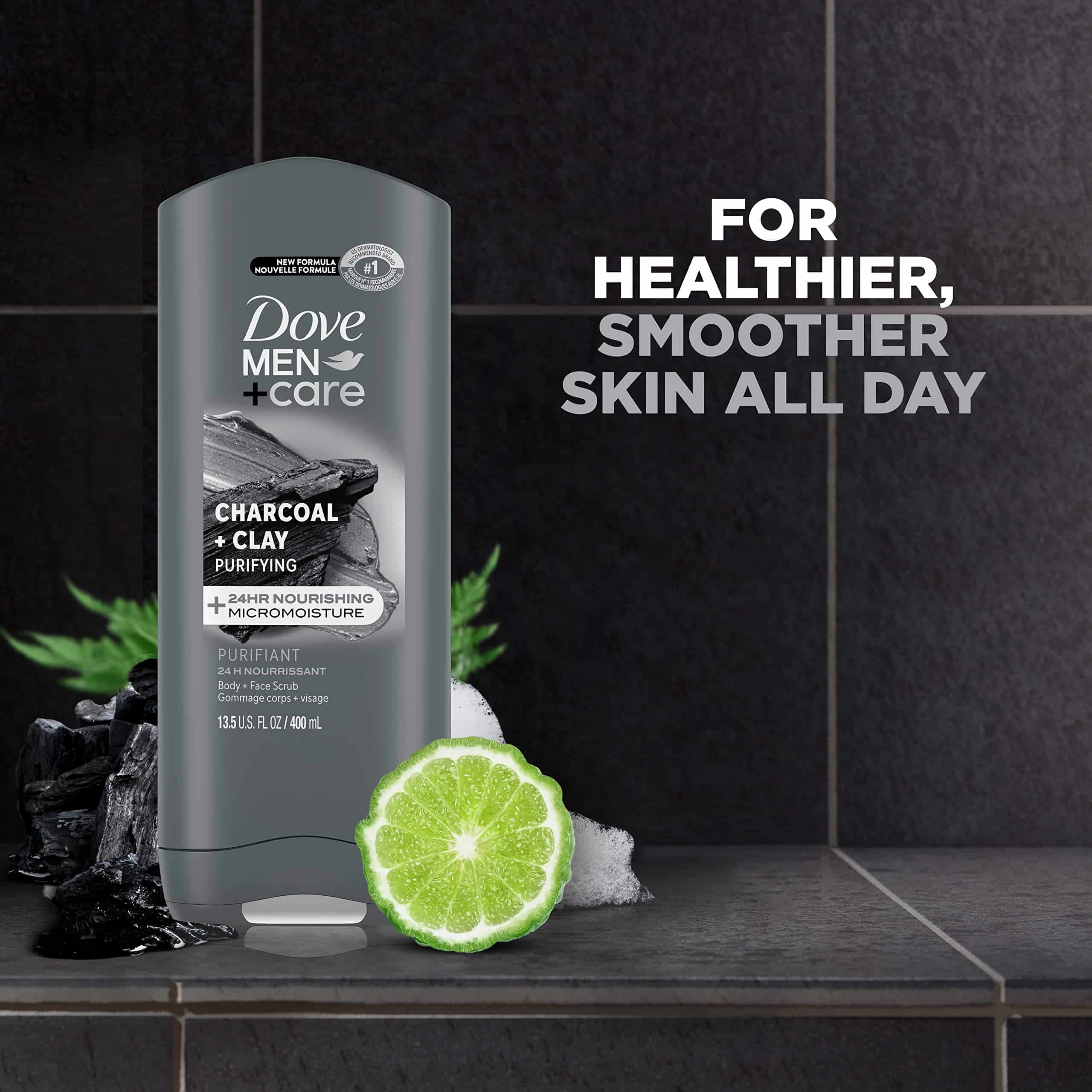 - FOR HEALTHIER, SMOOTHER FEELING SKIN ALL DAY: Dove Men+Care Charcoal + Clay men’s body and face wash hydrates your skin to keep it feeling healthy and smooth all day