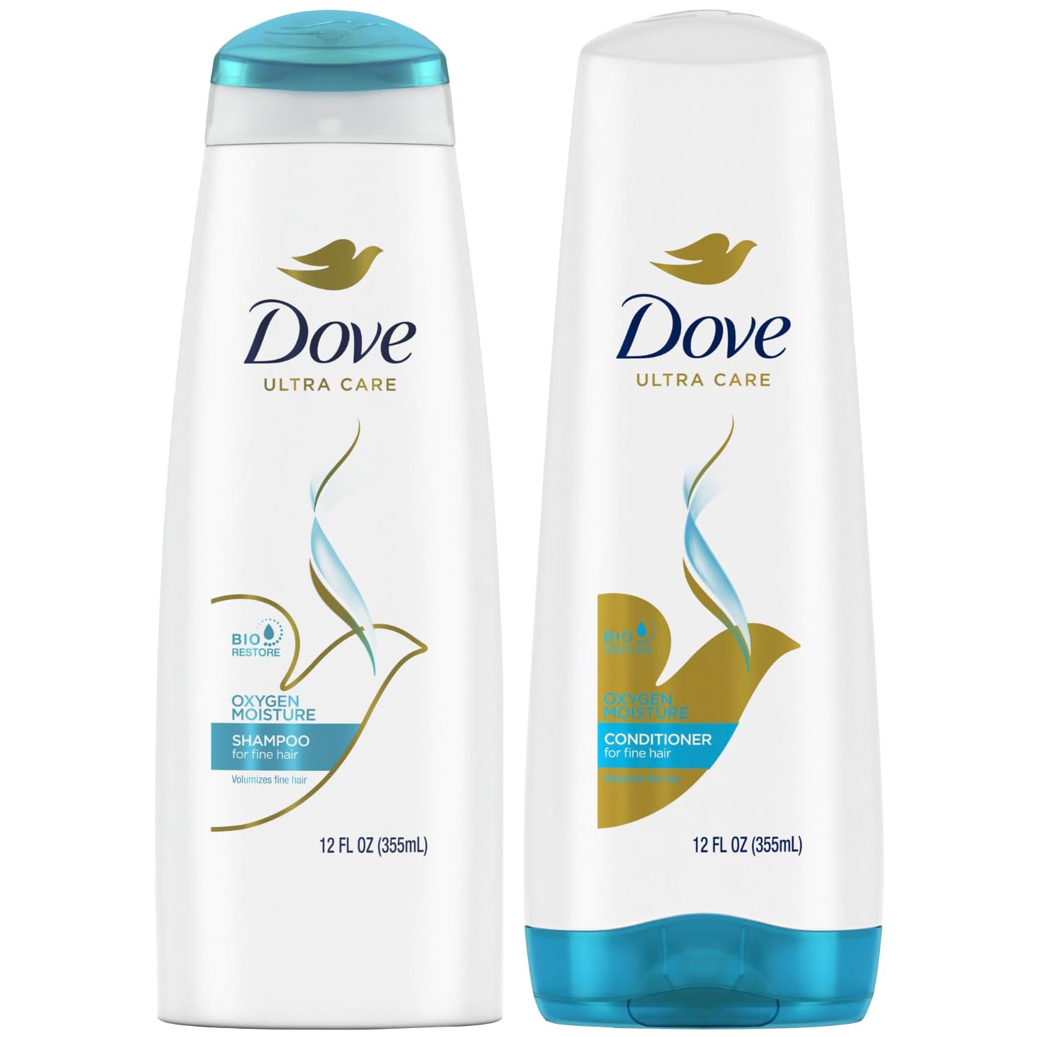 Dove Shampoo and Conditioner Set – Oxygen Moisture Hydrating Shampoo and Conditioner Sulfate-Free, Volumizing Hair Products for Fine Hair, 12 Oz (2 Piece Set)