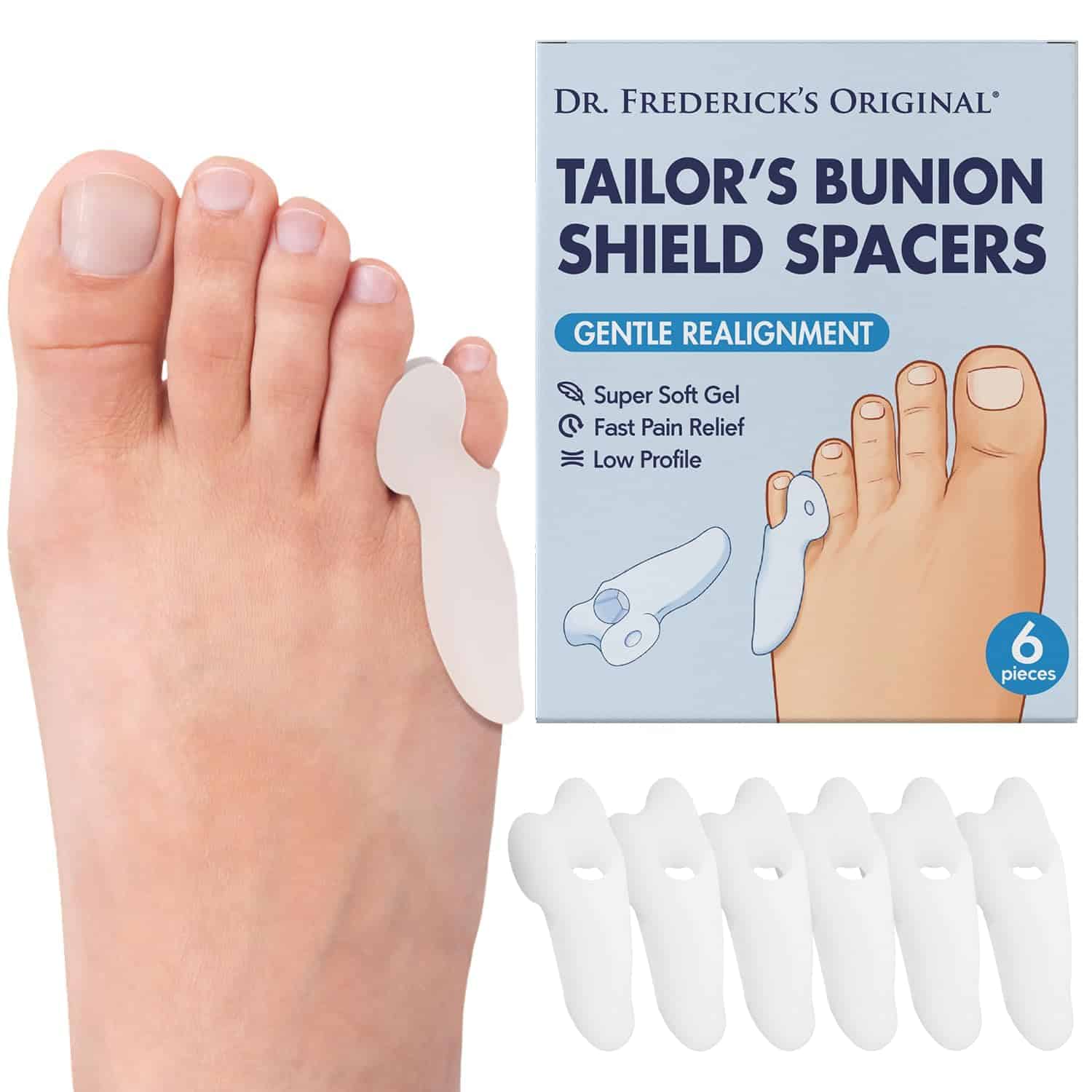 - Comfort For Your Feet: Discover the comfort offered by our Dr. Frederick s Original Tailor s Bunion Sport Spacers. This set of six (6) shield spacers is specially designed to provide comfort for those experiencing discomfort from tailor s bunions or similar foot issues. They’re ideal for active individuals who need extra support in their footwear.
