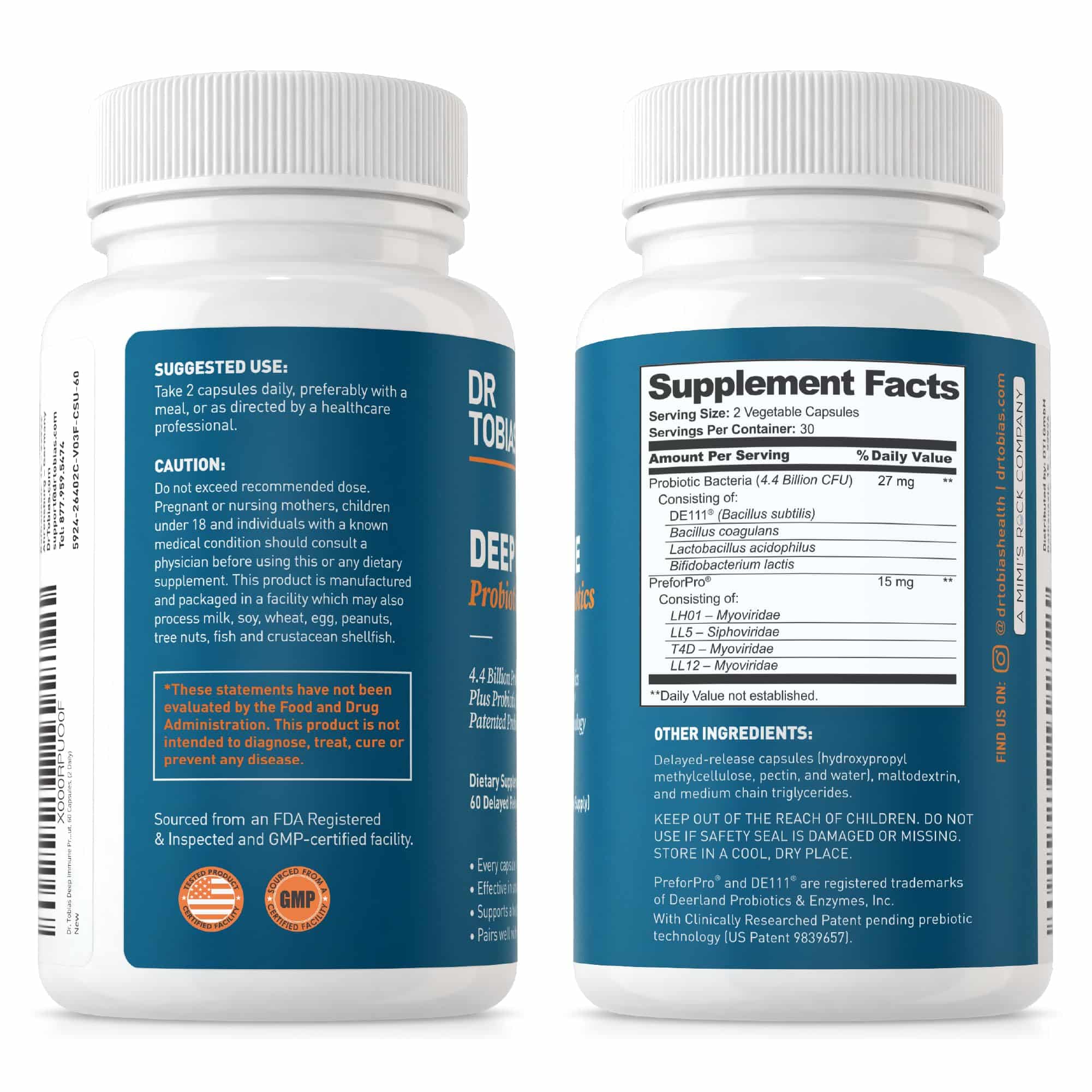 - Made with Care, Vegetarian & 100% Non-GMO: Sourced from a GMP certified facility and made in the USA from international and domestic ingredients. Dr. Tobias probiotic pills meet the highest safety and quality standards; plus, they don?t require refrigeration (that?s convenient!).