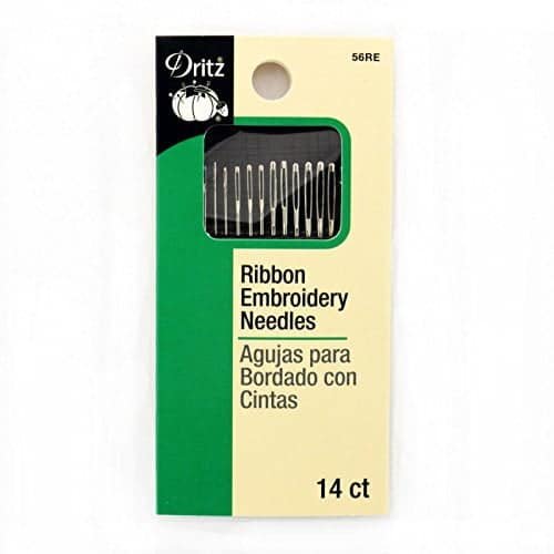 The Dritz Ribbon Embroidery Needles are ideal for ribbon embroidery on fabric or canvas. This needle assortment includes 2 – Beading Needles Size 10, 3 – Chenille Needles Size 20, 3 – Chenille Needles Size 18, 3 – Crewel Needles Size 8, and 3 – Tapestry Needles Size 24.